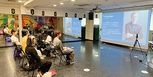 企業担当者を前に自分達の作品のテーマやメッセージを的確に伝えます。自分の作品の素晴らしさを伝えることの必要性や、「採用」に至るまでの過程をよりリアルに体験します。