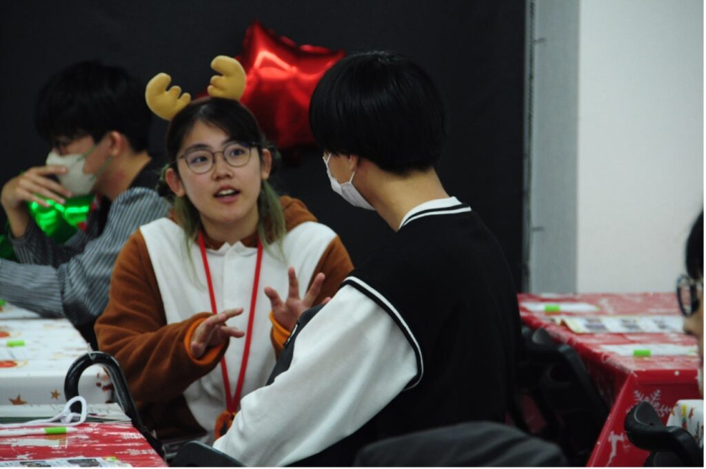 「学生スタッフの方々がたくさん話しかけてくれたことや、そばにいてくれたことで安心してクリスマスパーティーに参加することができました!」